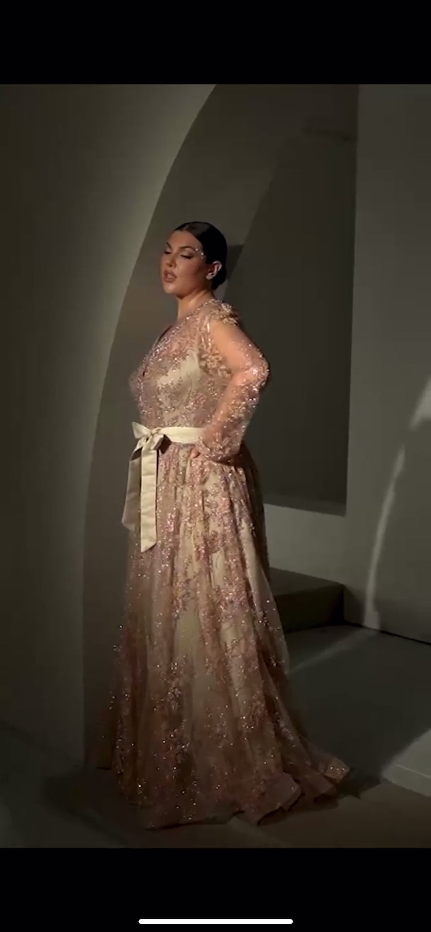 Get ready to make a grand entrance in this stunning modest long sleeve gown.