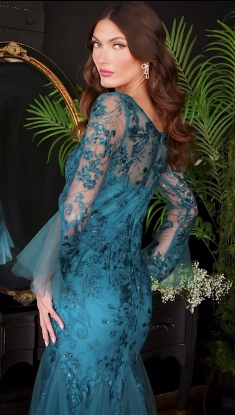 Elevate your style and make a statement with this stunning bell sleeve mermaid gown. It is the epitome of classic sophistication and is guaranteed to turn heads at any special occasion.